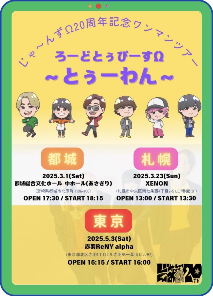 20周年記念3大ツアーの締めくくりはワンマンツアー!新体制6人のじゃ〜んずΩをとくとご覧あれ!🎨